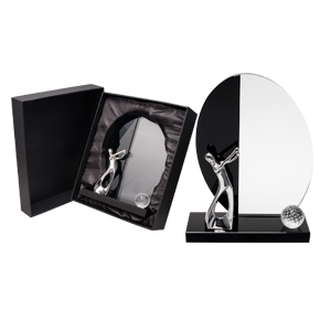 RECONOCIMIENTO DE CRISTAL CON DISEÑO TIPO GOLF. INCLUYE: CAJA DE CARTÓN GRUESO